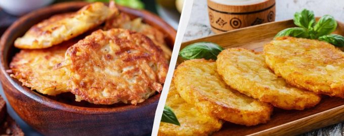Χρησιμοποιούμε μπλέντερ ή επεξεργαστή τροφίμων αντί για τρίφτη για να κόψουμε τις πατάτες, αλλά ο κιμάς είναι πιο βολικός. Εκτός από το κύριο συστατικό, μπορείτε να προσθέσετε και άλλα λαχανικά (καρότα, κολοκυθάκια, παντζάρια) ή κιμά, δημιουργώντας εύκολα νέες παραλλαγές του πιάτου. Δεν χρειάζονται περισσότερα από 10 λεπτά για να αλέσετε και άλλα 10 λεπτά αρκούν για το τηγάνισμα, ειδικά αν φτιάχνετε μικρές ποσότητες.