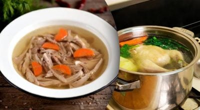 Ανακατέψτε τη ζελατίνη και το νερό, αφήστε το να σταθεί για λίγο, προσθέστε το στο ζωμό, ζεστάνετε στη φωτιά και ανακατέψτε καλά.